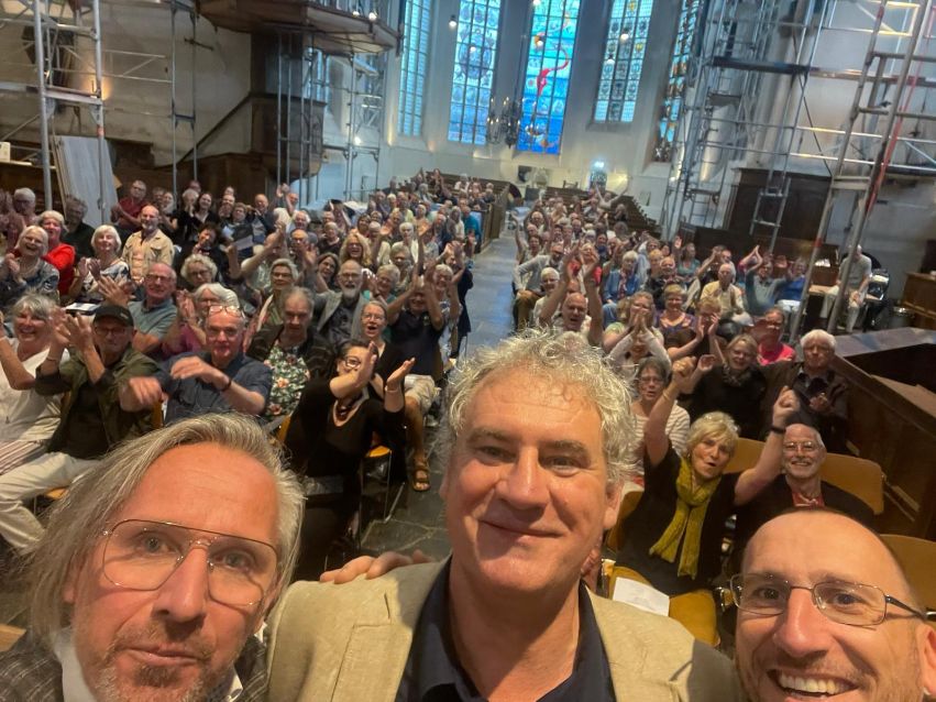 met o.m. componist Wouter Hakhoff, projectkoor Sappho, slagwerker Glenn Liebaut en organist Mark Heerink